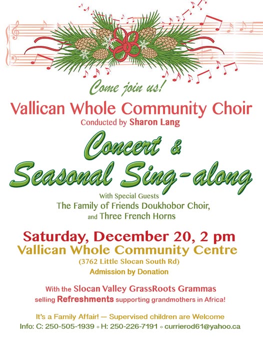 « All Events This event has passed. Vallican Whole Community Choir Holiday Concert & Singalong December 20, 2025 @ 2:00 pm – 5:00 pm Add to calendar Google Calendar iCalendar Outlook 365 Outlook Live ← Whole Holiday Market! → Stupid F***ing Bird – A Staged Reading
